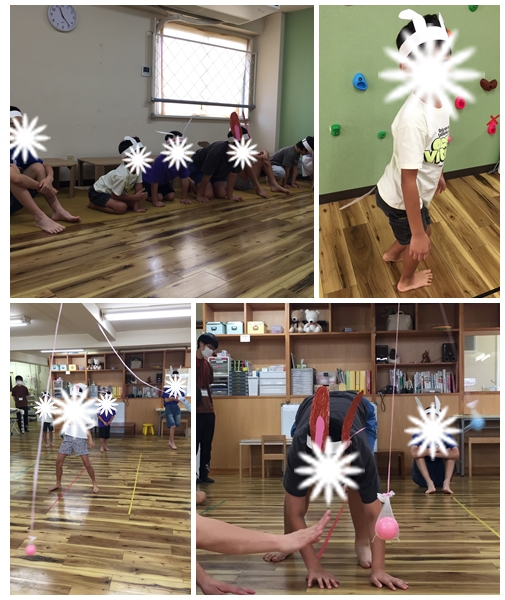 可愛いうさぎ🐰さんで、うさぎ跳びの運動をしました。