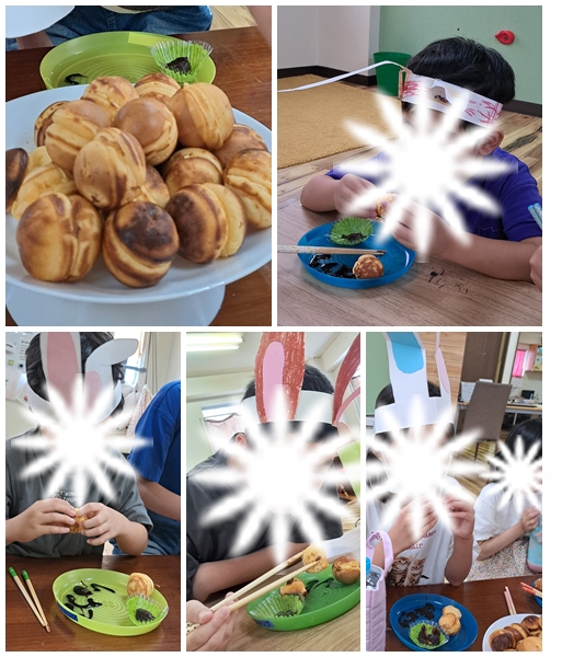 出来上がった、鈴カステラは、お月見団子のようピラミッド状に積み上げに盛り付けをして、みんなで季節の行事を感じながら食べましたよ。