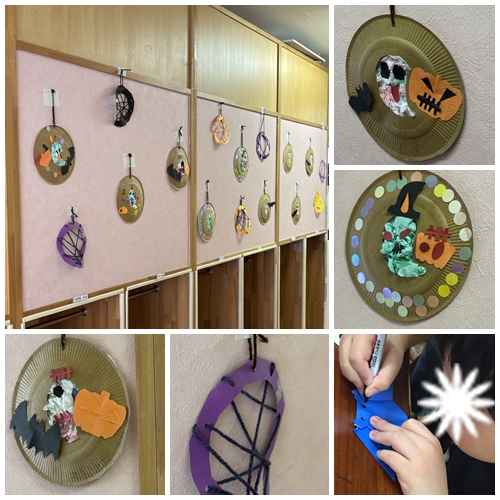 壁面はハロウィンにちなんだ飾り作りをおこないました。