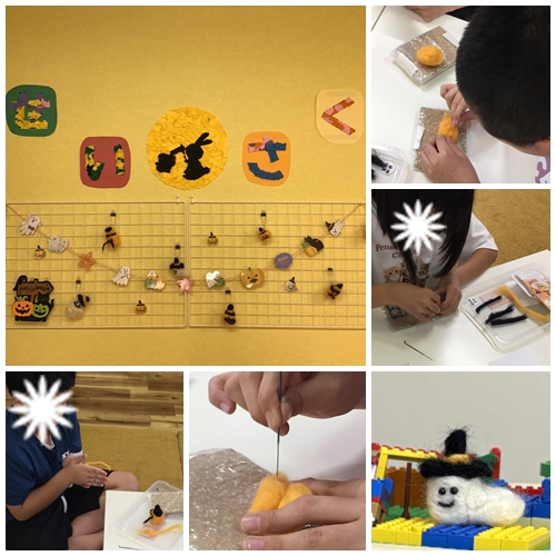 高学年は、お裁縫でハロウィンの吊るし飾りを作りましたよ。
