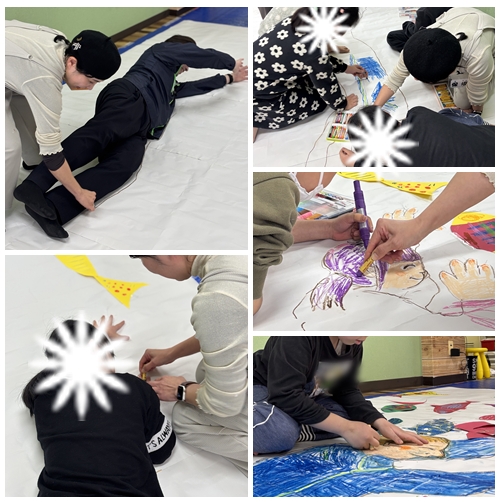 その後は、希望したお友達みんなでワイワイと人型に色塗りをおこないました。